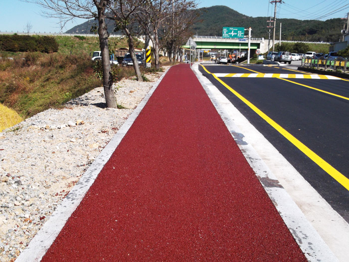 采用特种树脂和各色专用集料及助剂制成应用于高速公路收费口、公交车专用道、危险警示路段、路口弯道坡段、环境美化区域等。具有防滑、警示、耐污易冲洗、混凝土路面防护等综合功效。