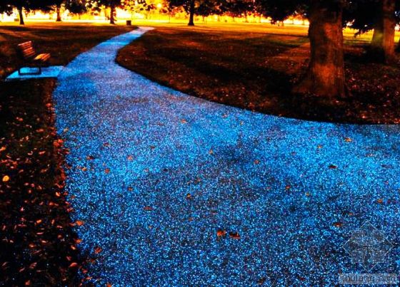 铝酸盐系发光材料与环氧沥青混合料二者经过固化剂及其他材料一系列调制后,经过相配套的特种铺装技艺,即可达到路面吸收光能及逐渐散发荧光的效果。