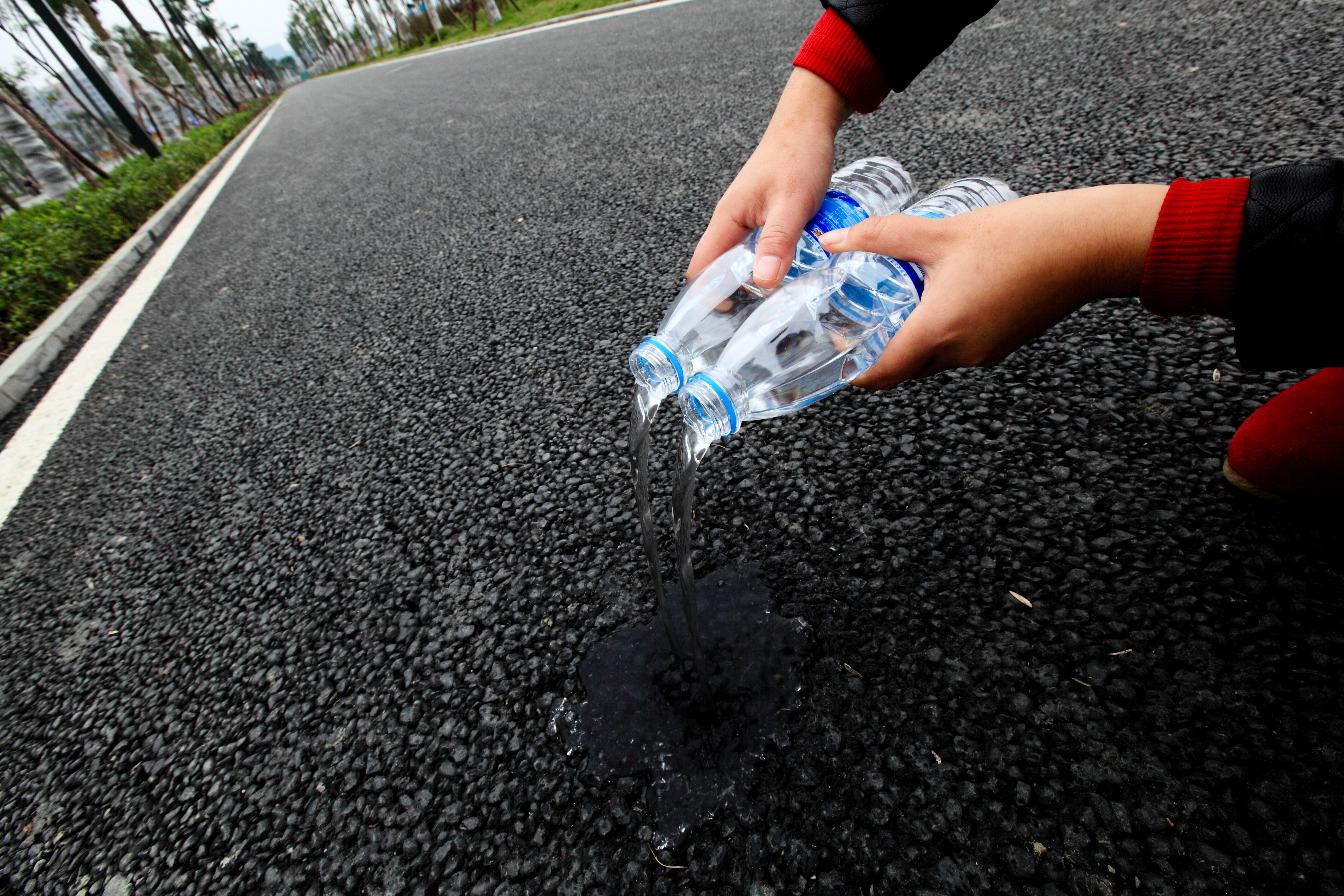雨天跟车行驶时,由于路表有一定厚度的水膜,道路表面溅起水雾现象对后车跟车行驶的能见度造成极大不利影响。排水沥青降噪路面可以抑制雨水天导致的溅水起雾,极大提高雨天行车能见度和安全性。